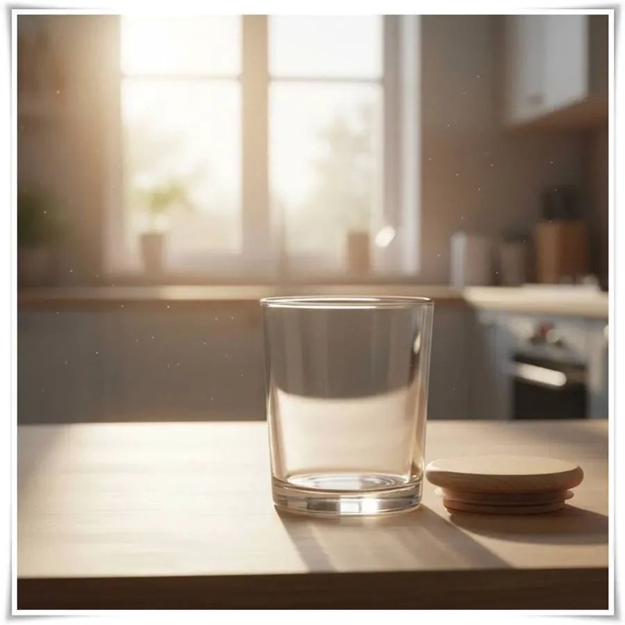 Pojemnik ryflowany, szklany świecznik z grubego szkła H-8 cm D-9,5 cm